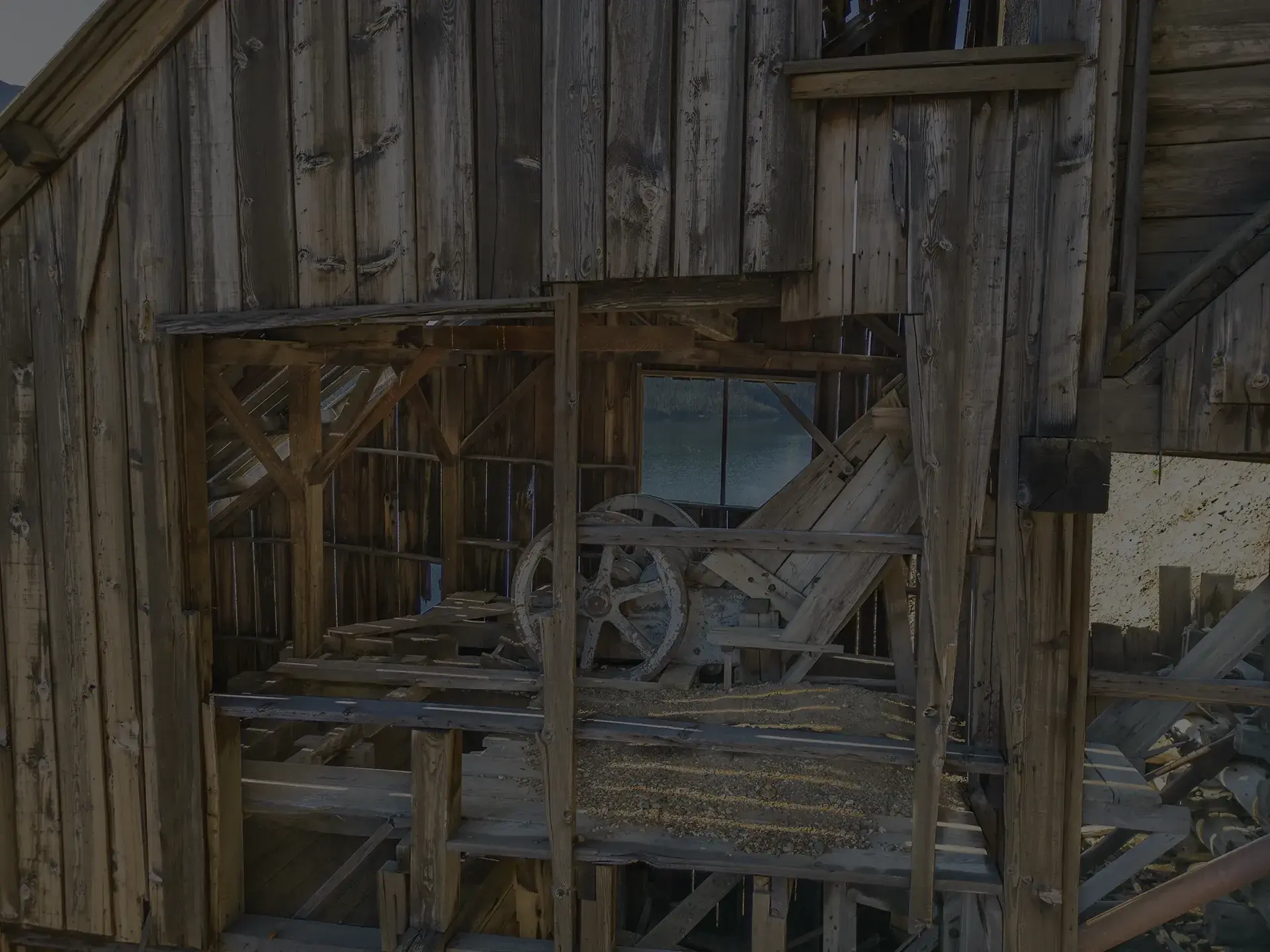 Crushing, sorting, and concentrating were the main functions of the mill – but lots of other equipment was needed for these to happen. A wood-powered steam boiler powered the equipment and generated electricity for lighting. Steam heat kept the mill warm enough to operate during the cold winter months. Compressed air supplied air to the oil flotation tanks, and may have supplied air to pneumatic devices in the mine above the mill. Water was piped in from the lake to mix with the ore during milling and flotation. Tanks and bins collected material, while chutes and landers (box conduits for ore slurry) moved materials from one location to the next.